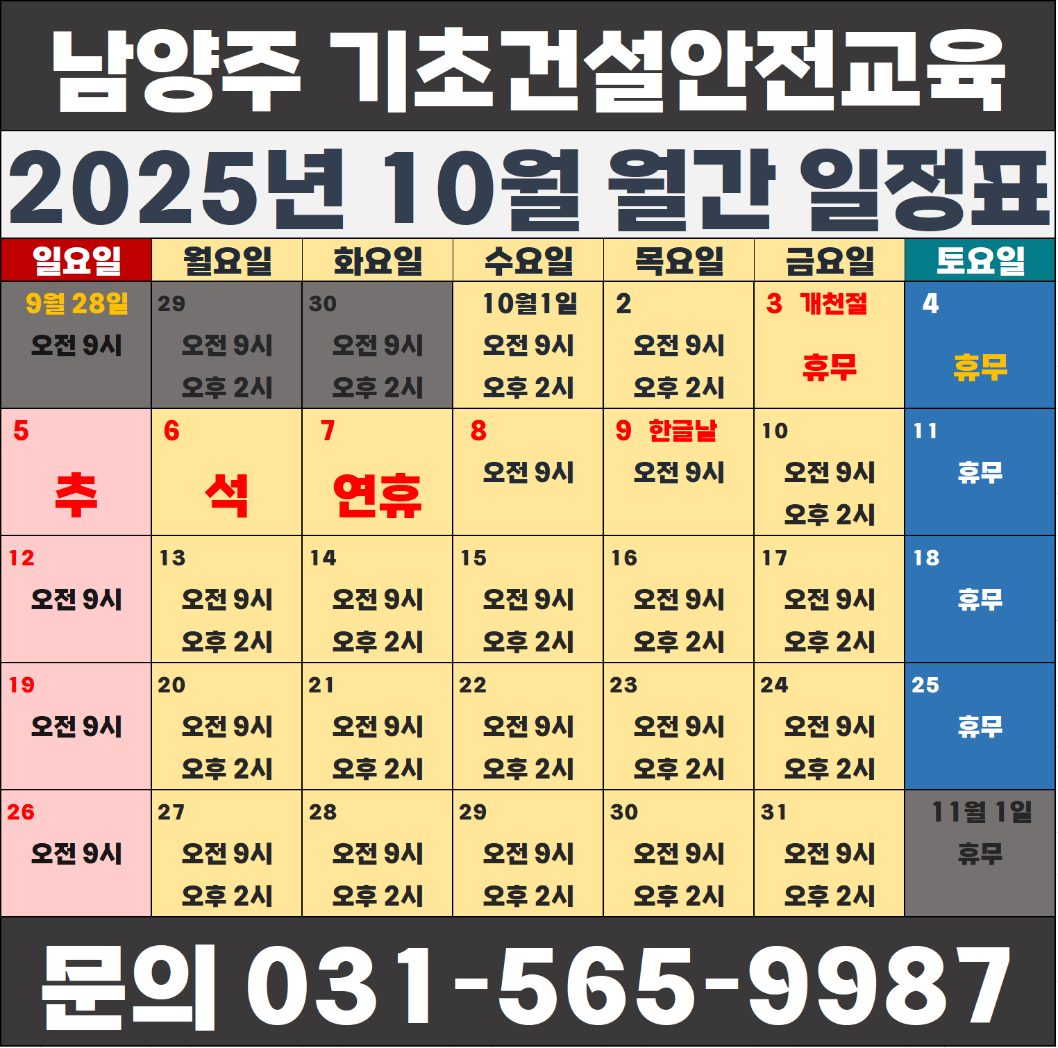 2025년 10월 남양주 건설안전보건교육 운영 계획
