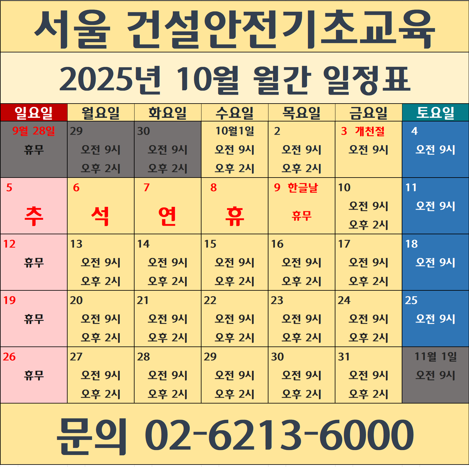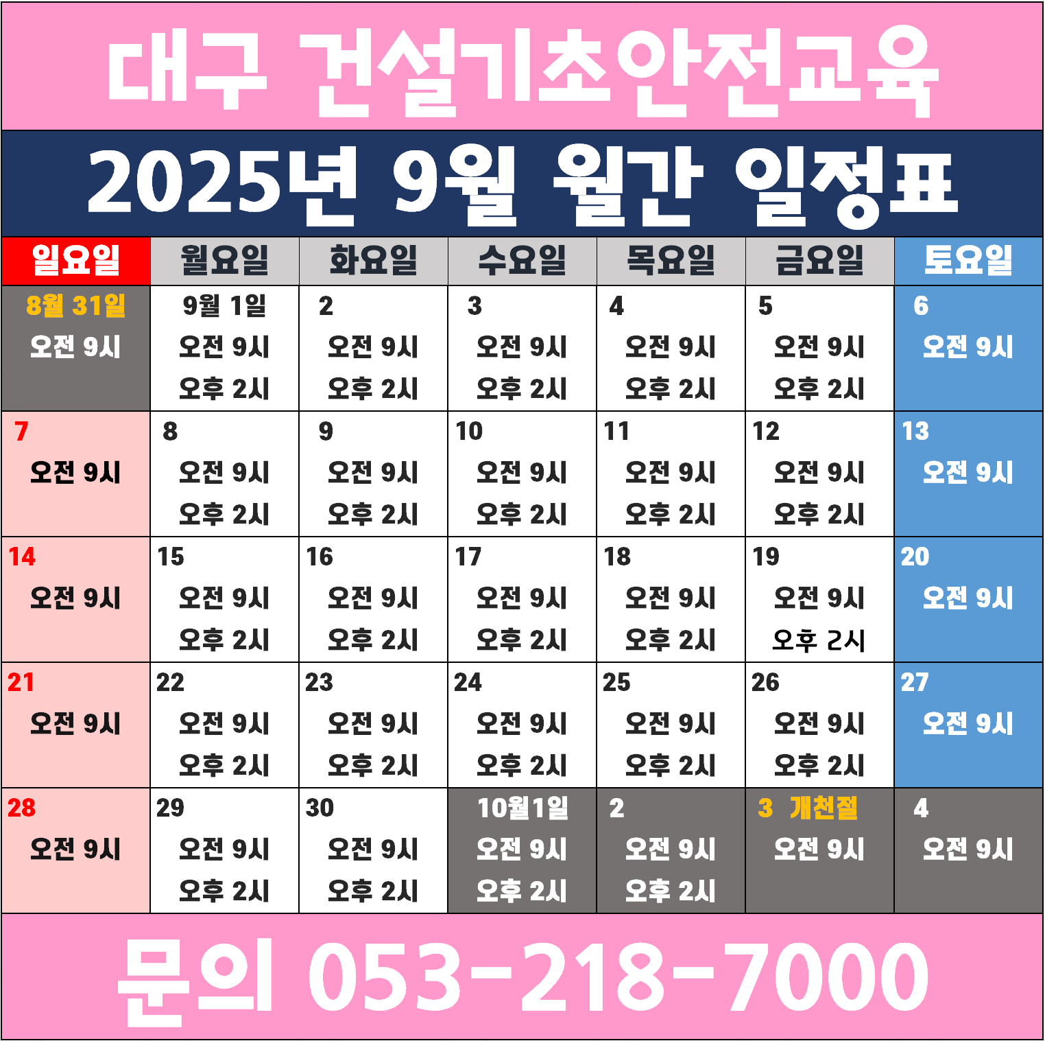 대구 건설기초안전교육 2025년 10월 교육 일정