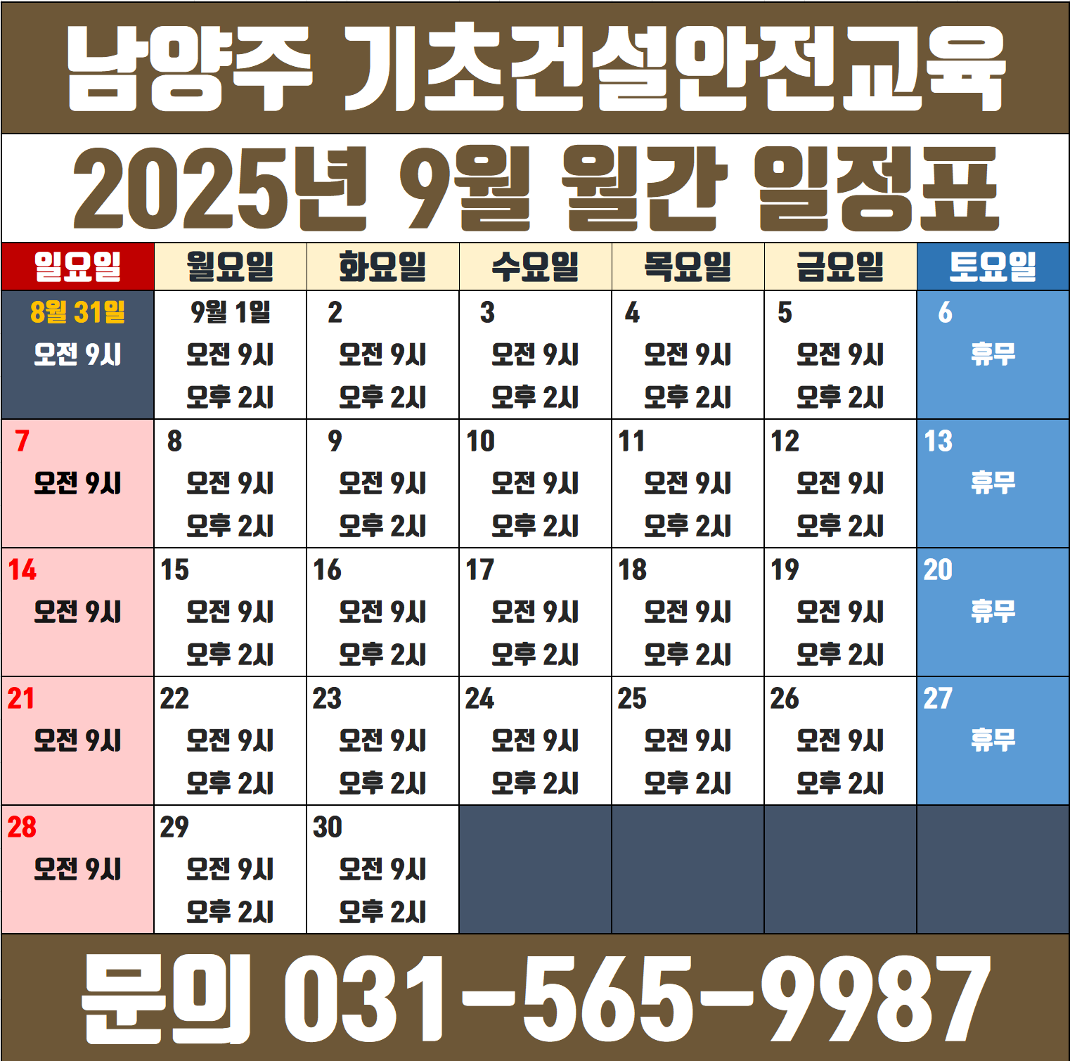 건설안전기초교육 남양주 교육센터 2025년 9월 운영 안내