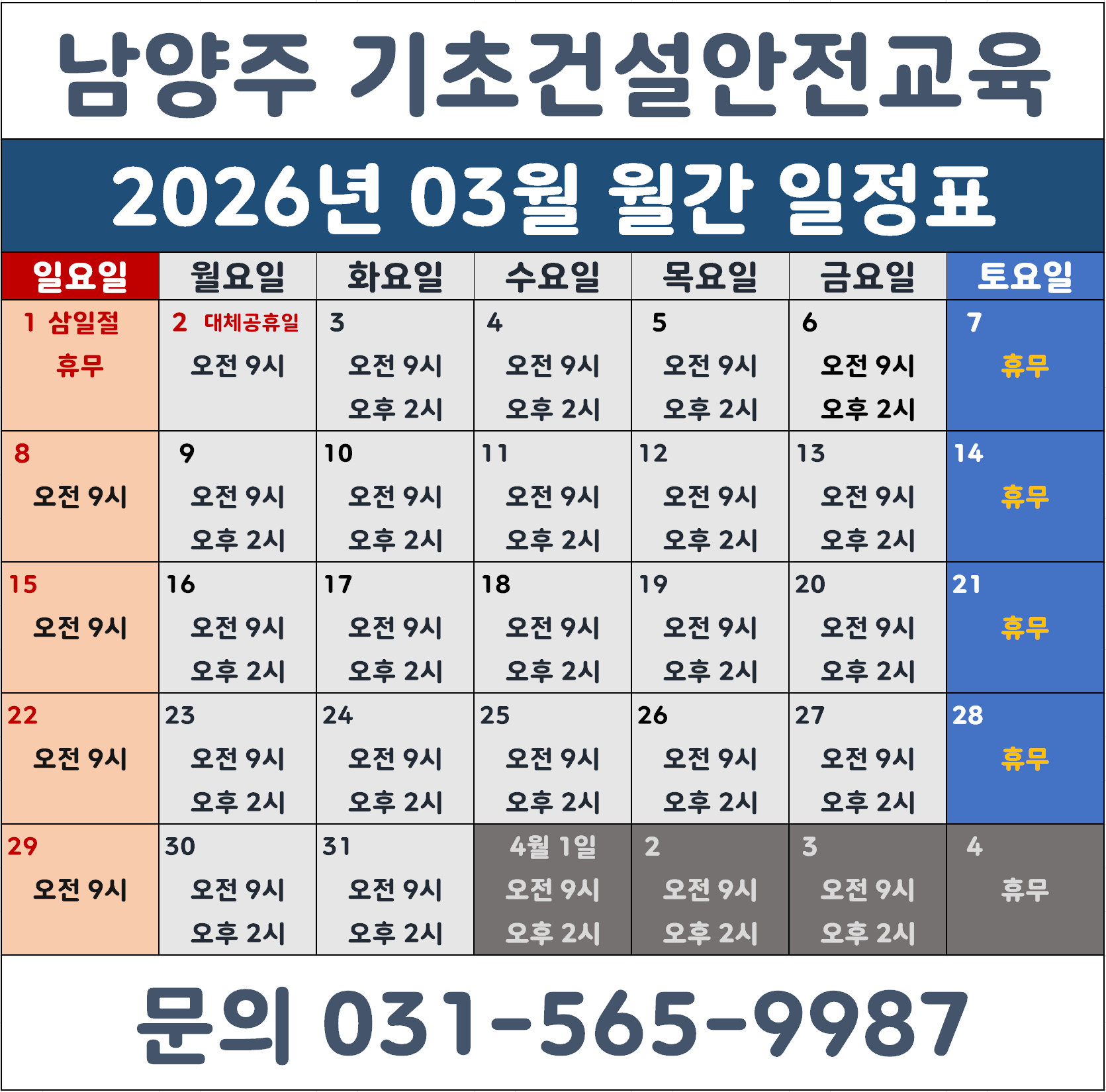 2026년 2월 남양주 건설기초안전교육 스케줄