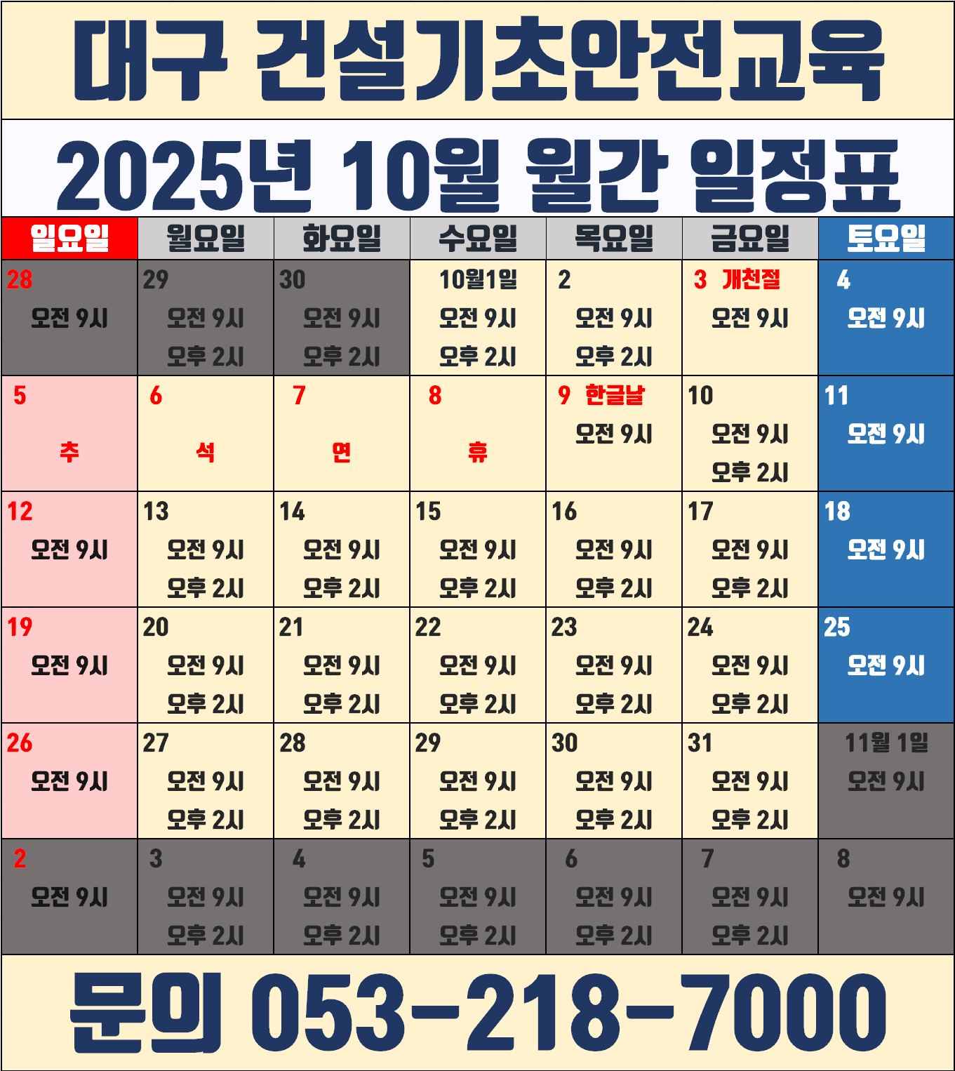 대구 건설기초안전교육 2025년 10월 교육 일정