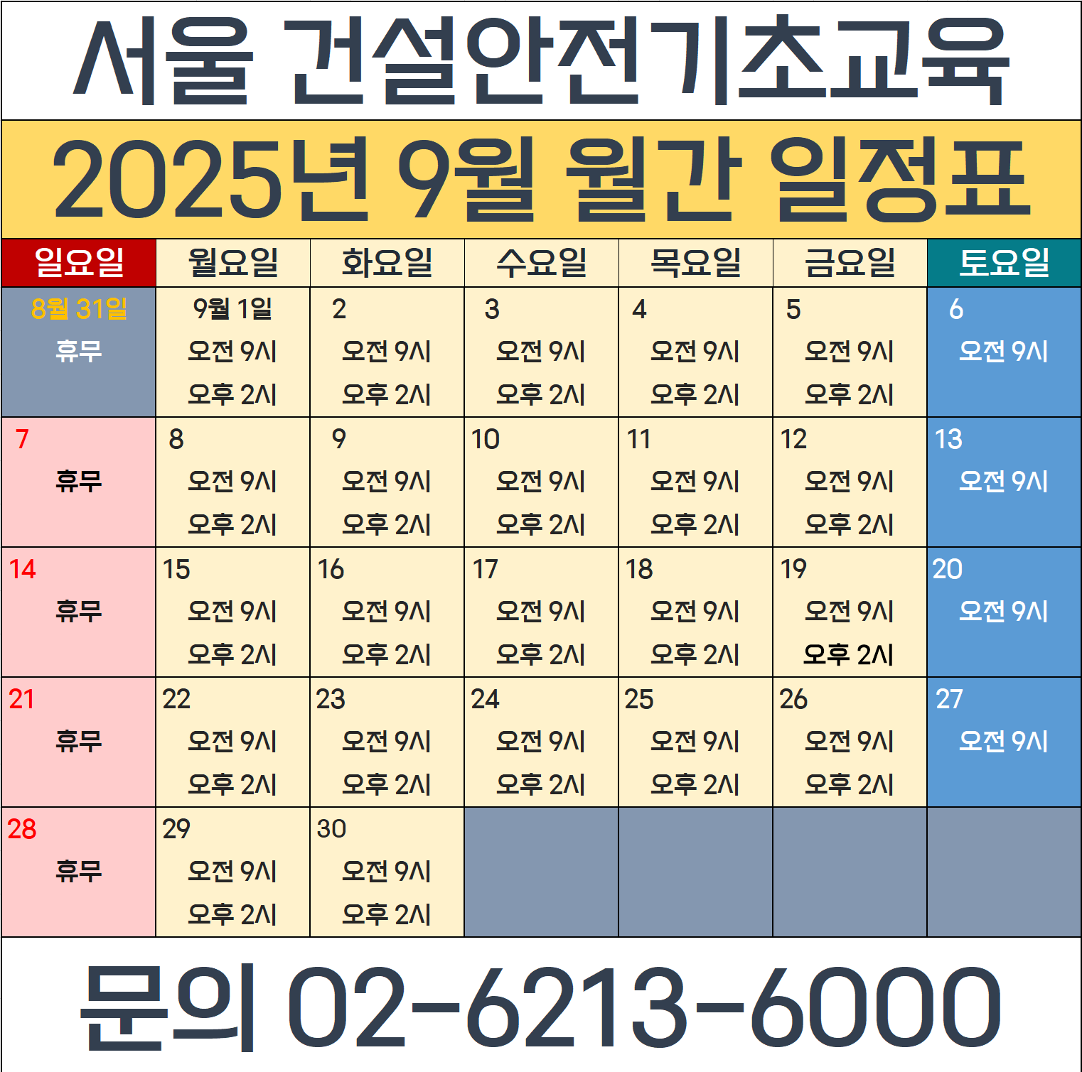 건설기초안전보건교육 서울 교육센터 2025년 9월 운영 안내