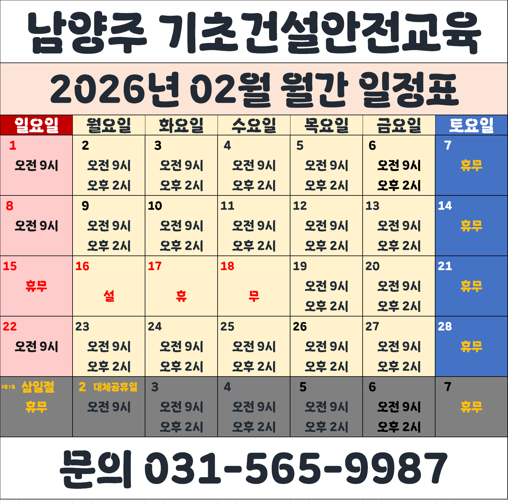 2026년 2월 남양주 건설기초안전교육 스케줄